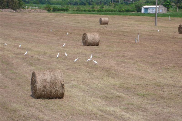 這天天氣真的很好,經過滿州鄉正巧看到牧草收割,有許多鳥兒四處啄食被翻出的蟲子, 成捆的牧草穩穩的落在田地上,有種簡單靜懿的氣氛,