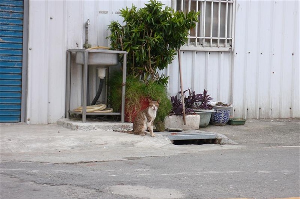 坐在分水嶺的雜貨店門口喝個涼水,當地貓咪好奇的打量我,我則回敬牠一個快門,
