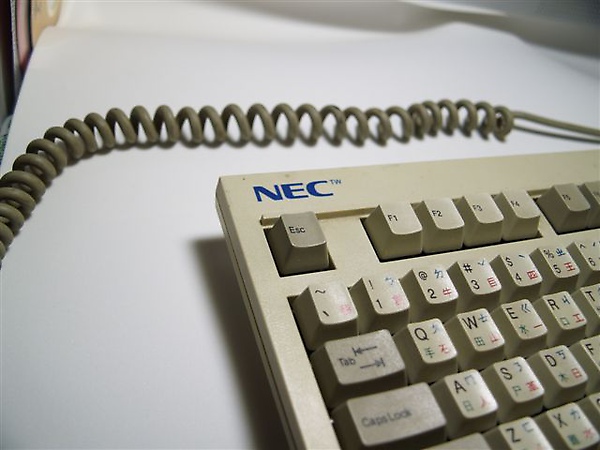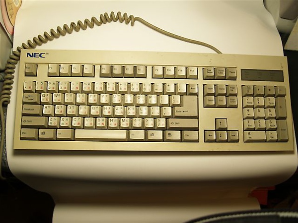 話說~這是大三時從垃圾桶裡撿回來的,當時還順便回收NEC P166MMX主機一台,15" Rainbow CRT一台,NEC揚聲器一對,另外還在其他垃圾桶發現幾個15" CRT以及鍵盤滑鼠數隻,和LJ(一個也有撿回來測試看看興趣的同學)一起把他們搬回來,LJ喜歡的是螢幕,我個人偏好週邊輸出入設備,因此入手了這隻鍵盤。
