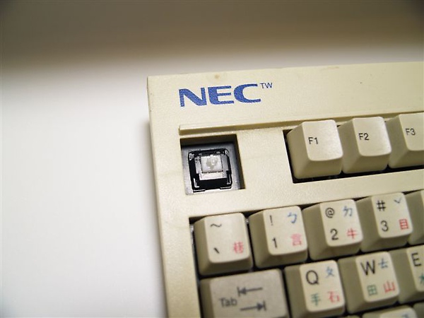 普遍都會拔掉Esc給大家瞧瞧,是個看起來跟Cherry MX非常近似的軸,看來就是傳說的台白軸了,