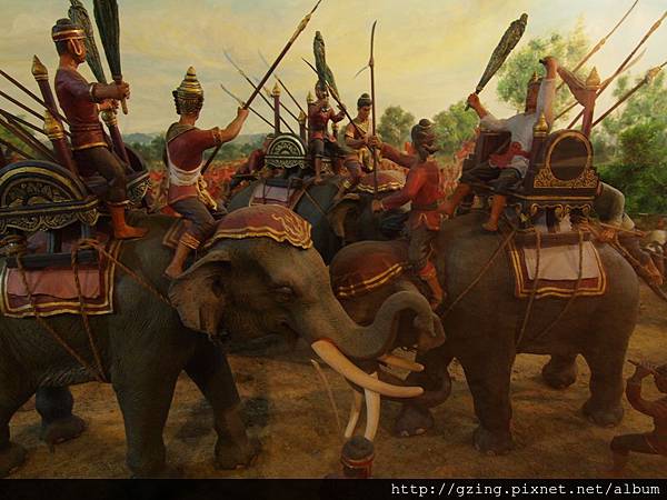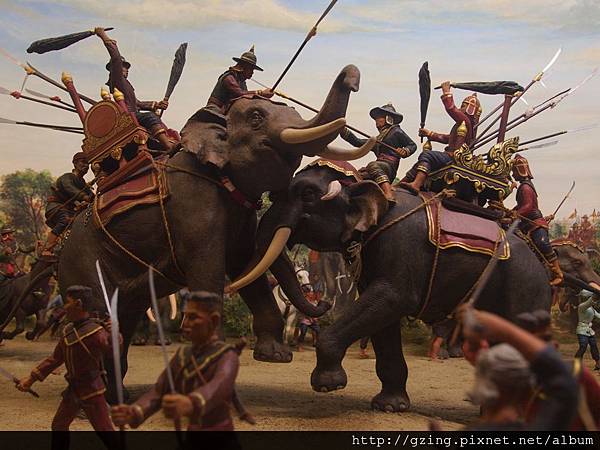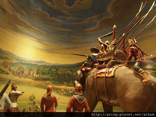 當時已經有火繩槍囉,穿紅衣站立在泰王象腿旁的就是傳說中的泰拳衛士