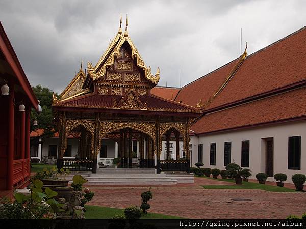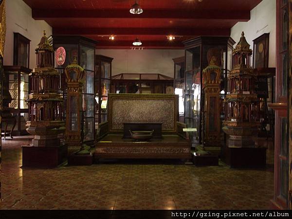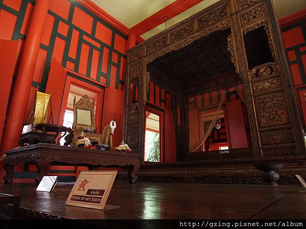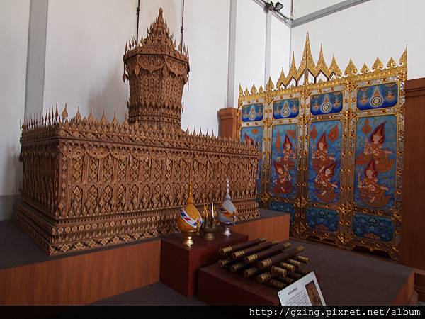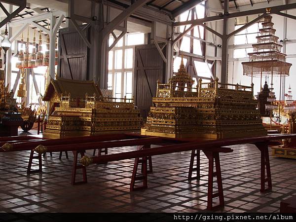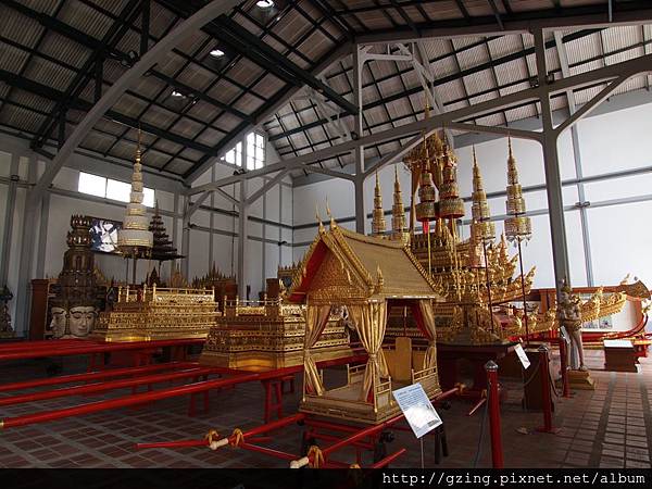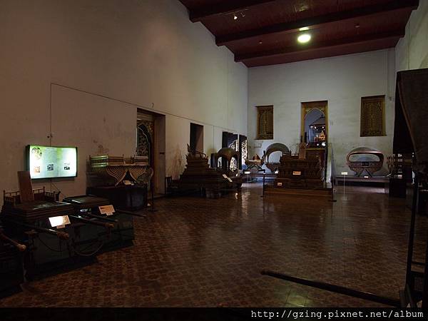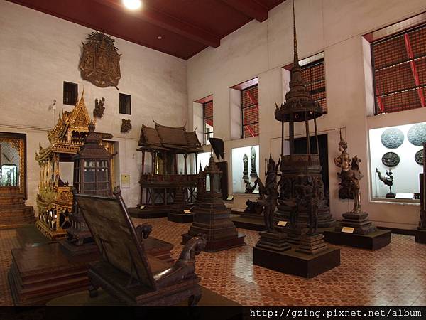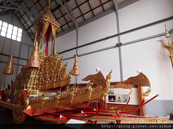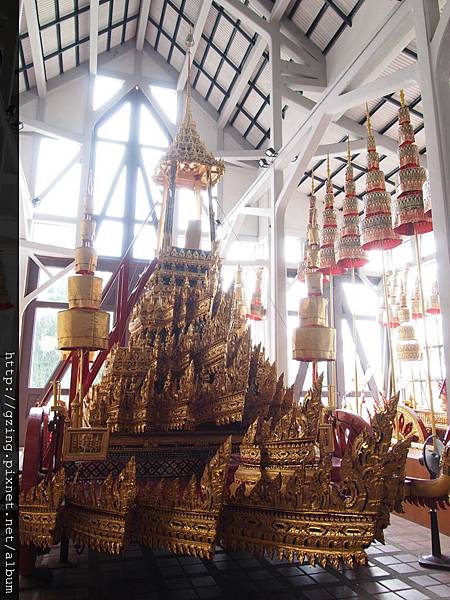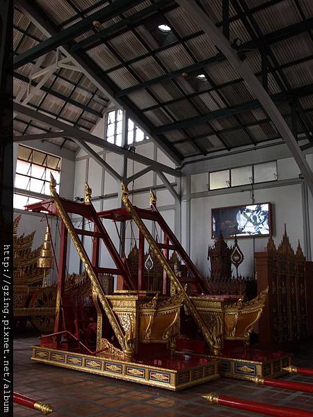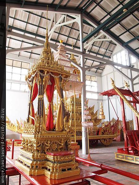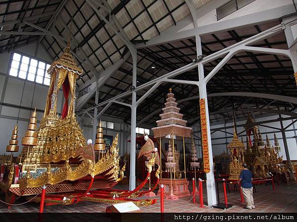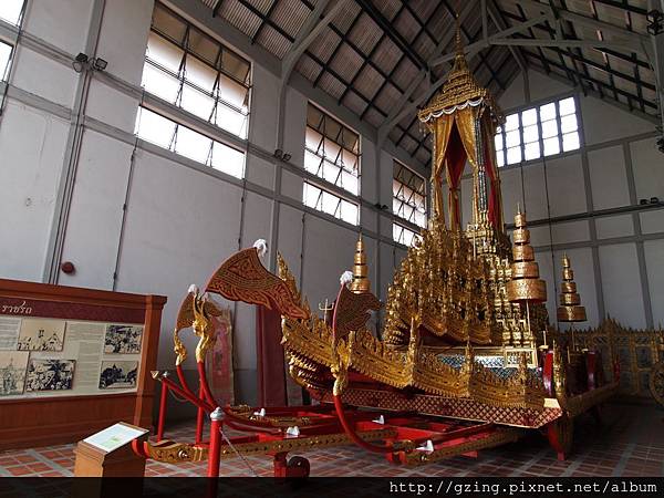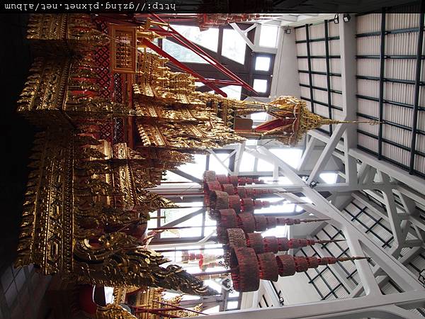這區禁止攝影,但我還是很快速的拍了一張,左邊的門旁是一個全象牙雕刻的泰皇出巡時,所乘坐的轎子,精緻華美,放在這位置有些可惜