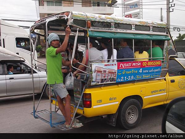 大型公車的點似乎不多,路上最常見的就是像這樣的雙條汽車當成大眾交通工具