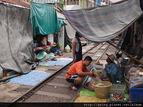 逐步往回走,泰國的鐵道市場消費方式就是這樣席地而輕鬆