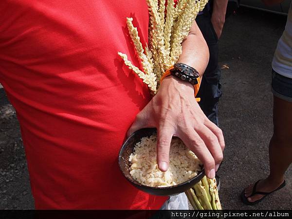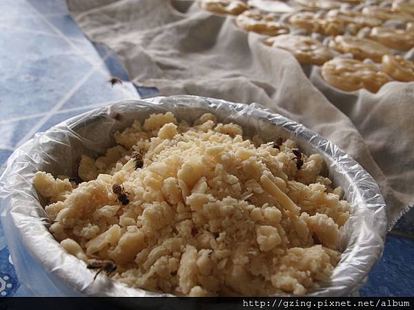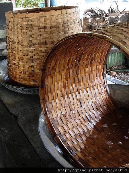 蒸製用的竹籠,上面一點一點黑黑的玩意不是蒼蠅兄,是聞香而來大量的蜜蜂,完全專注在採蜜上,也不會纏人