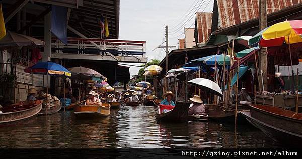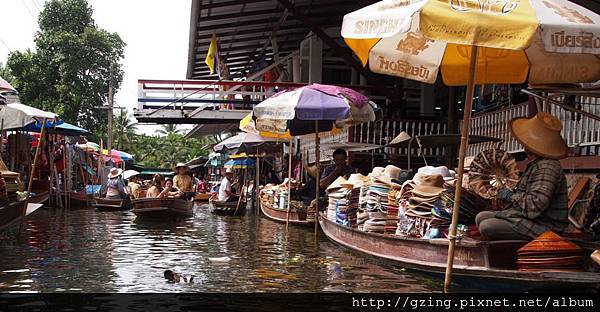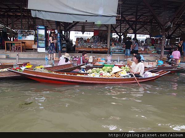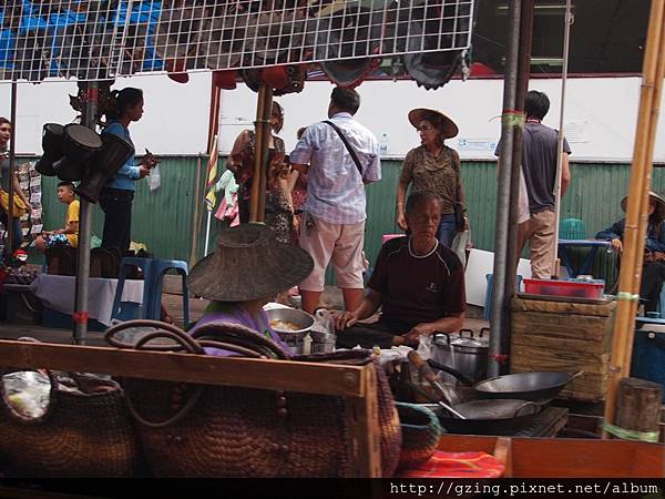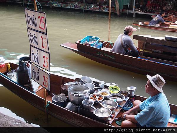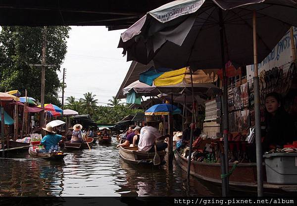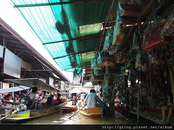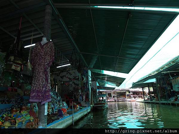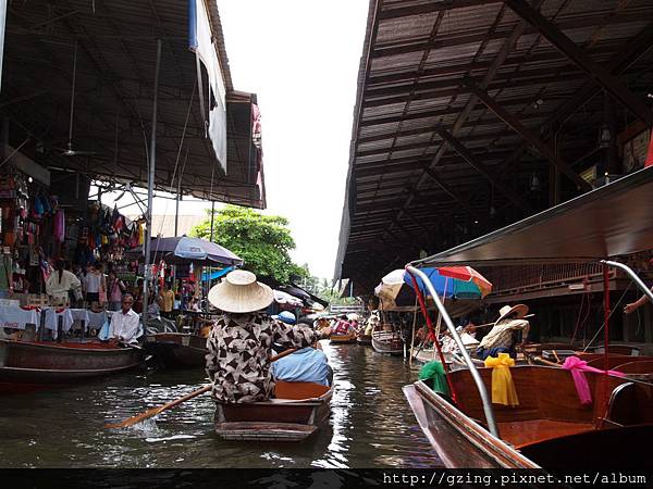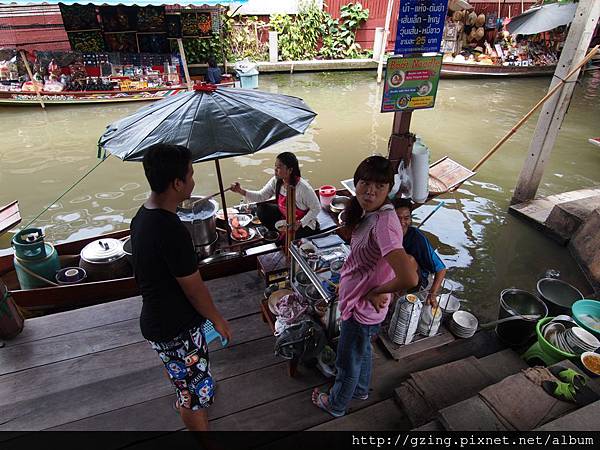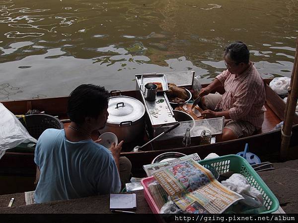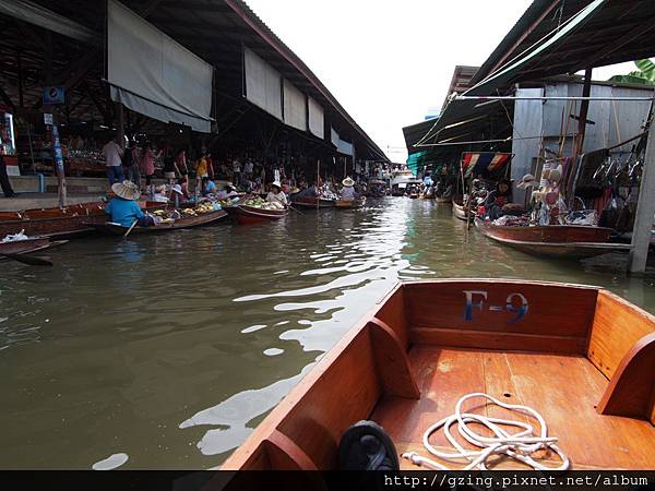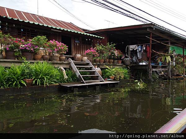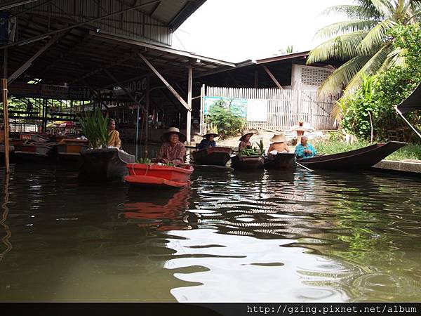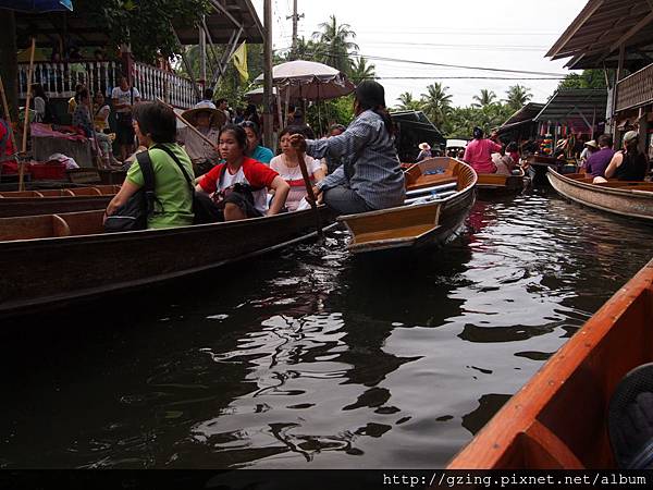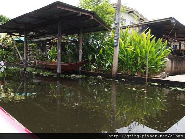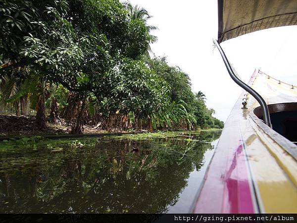 過了個十分鐘就到達Dammnoen Saduak(單悶殺嘟阿顆)水上市場,搭乘小船要另外付150Bat,因為我是單人出遊,船主非常爽快的就叫我坐船頭~視野好~讚~