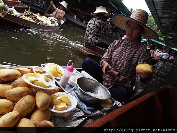 最右邊的大娘爆炸了,剛剛連續對著周遭的人大吼,雖然只聽懂一個字『買』,不過從其他人的態度和視線看來就是在說「你們什麼都不買,什麼都不買,只會一直拍照一直拍,還拍還拍,來這裡什麼都不買,這樣我們要靠什麼吃飯,最好是什麼都不買拉」,呵呵~大家都賣一樣的東西,還比曼谷貴,不然是有啥好買的~