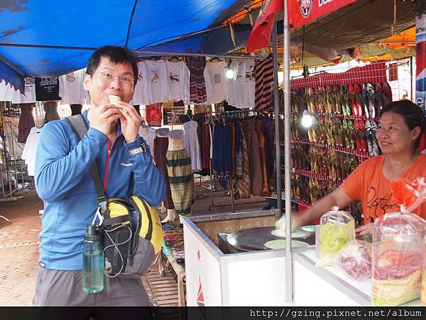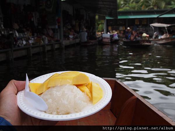 喔喔~芒果椰漿香米飯,好想吃阿~當我舉手問多少錢時,一開始是50bat,我說"PEN"表示泰文的貴,馬上就降價為40bat,我瑤瑤頭,結果小販就說「好啦好啦,算你30bat」,啊...是華裔喔...
