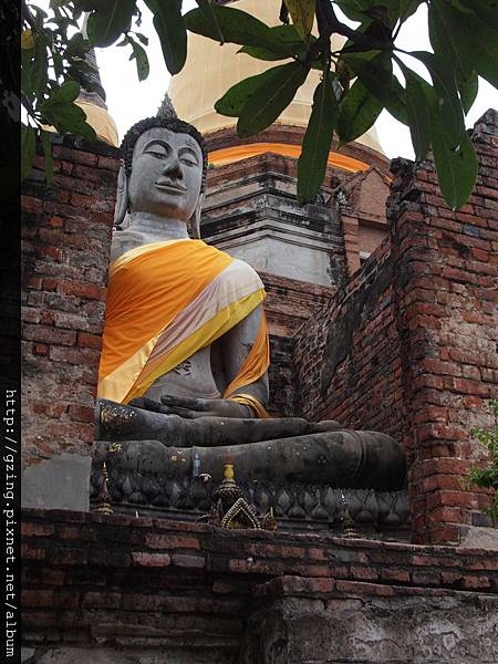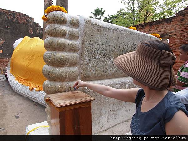 大城的臥佛寺遺跡,是Autthaya王朝的遺跡,因為1767年緬甸的入侵而殘破不堪,Autthaya王朝也因此而滅亡