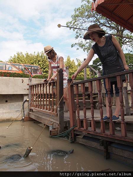10Bat可以買一盤香蕉餵烏龜,烏龜很習慣被餵食,都會自動靠過來,進食的模樣頗兇猛,這兩位是同行的韓國女性~居然只是週末的兩日遊,到底韓國經濟是有多好到泰國像是國內旅遊一樣週末即飛。