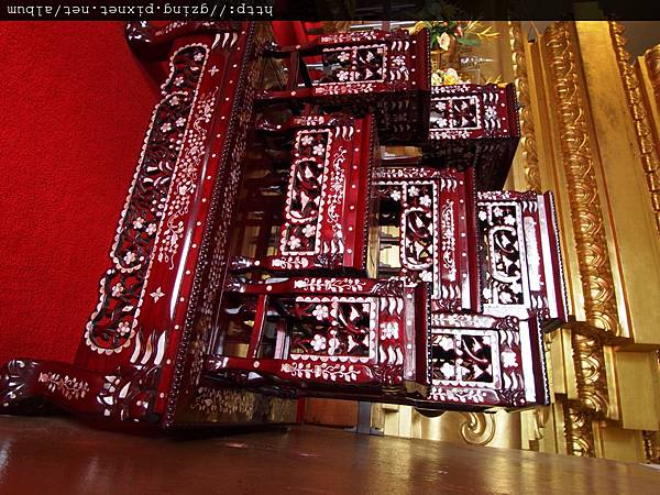 貝殼鑲嵌的高級桌椅,就這樣隨性堆疊,沒有其他保護,我還看到跟掃具擺在一起,變成工作人員的休息椅的貝殼鑲嵌椅,天啊~